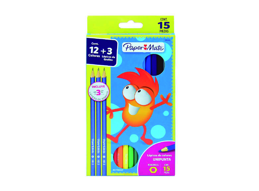 LAPIZ COLOR 12UN. LARGO HEXA.PAPER MATE+3GRAF