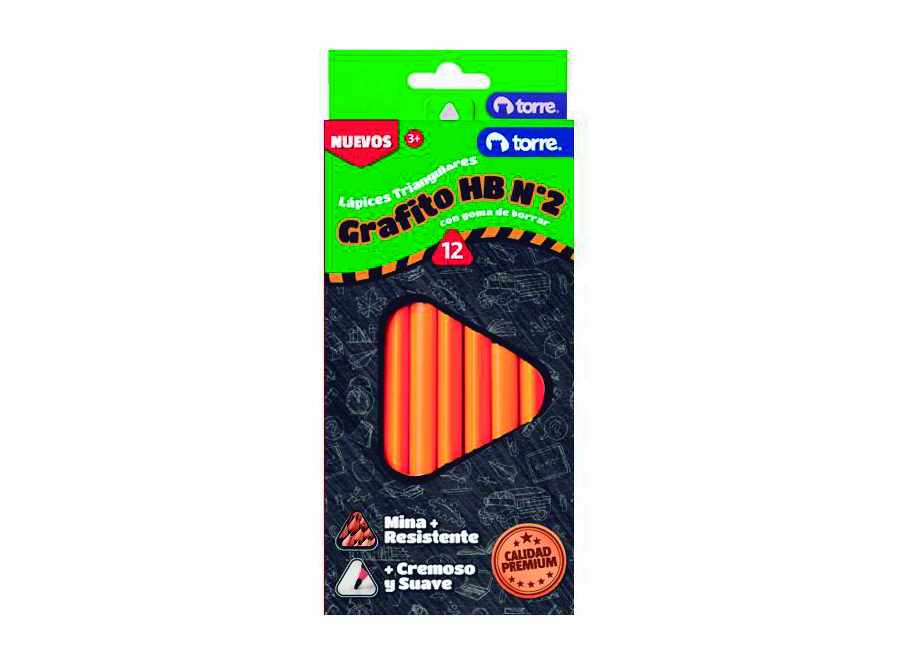 LAPIZ GRAFITO N.2 C/GOMA TRIAN. DP X 12 UN TORRE