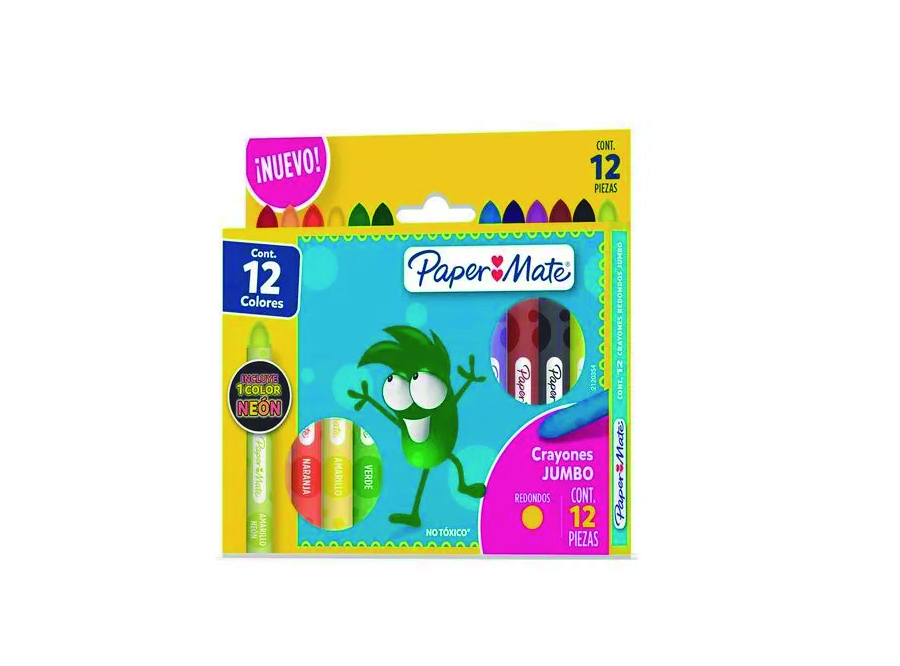 LAPIZ CERA 12 COLORES JUMBO REDONDO PAPER MATE