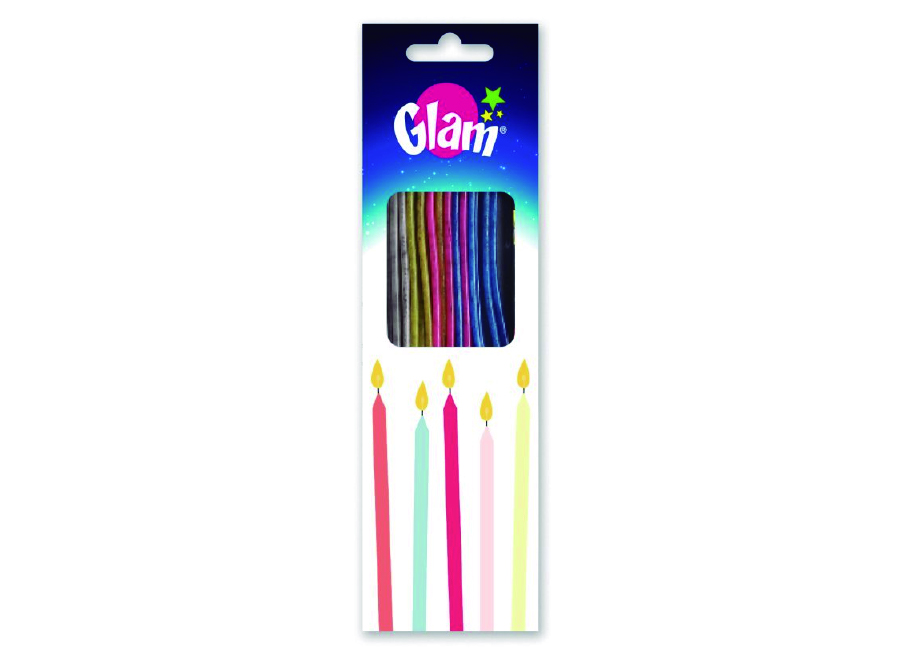 VELA CUMPLE. DESTELLANTES SURTIDAS X 18 UN GLAM