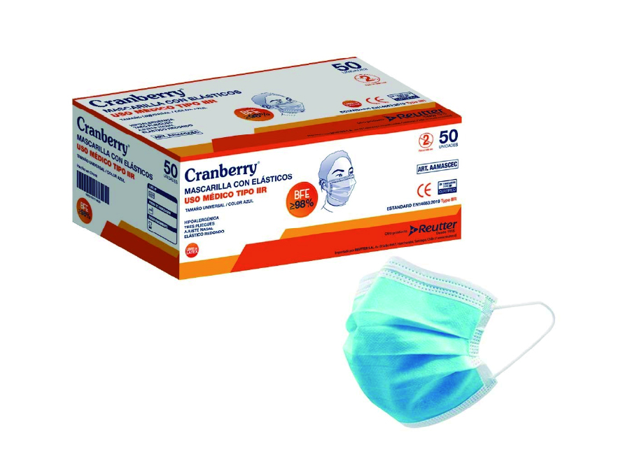 MASCARILLA 3 LAYER X 50 UND REUTER AZUL C/ELAST