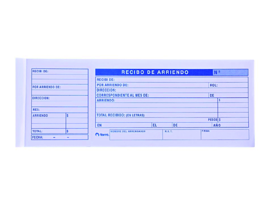 FORMULARIO RECIBO DE ARRIENDO 50HJ. TORRE
