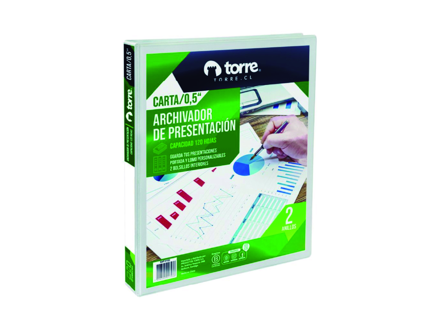 ARCHIVADOR CARTA C/PRES.BLANCO 2 AROS 0.5 TORRE