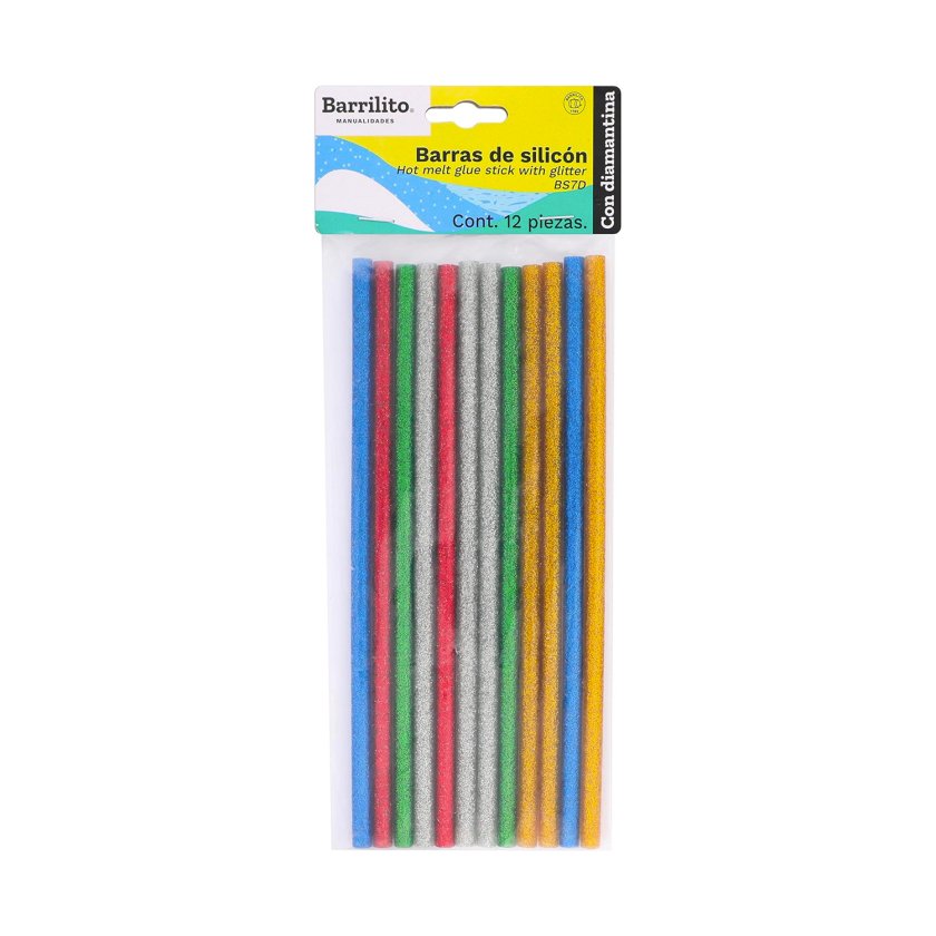 SILICONA BARRA 7MM X 20 CM X 12UN GLITTER BARRILI